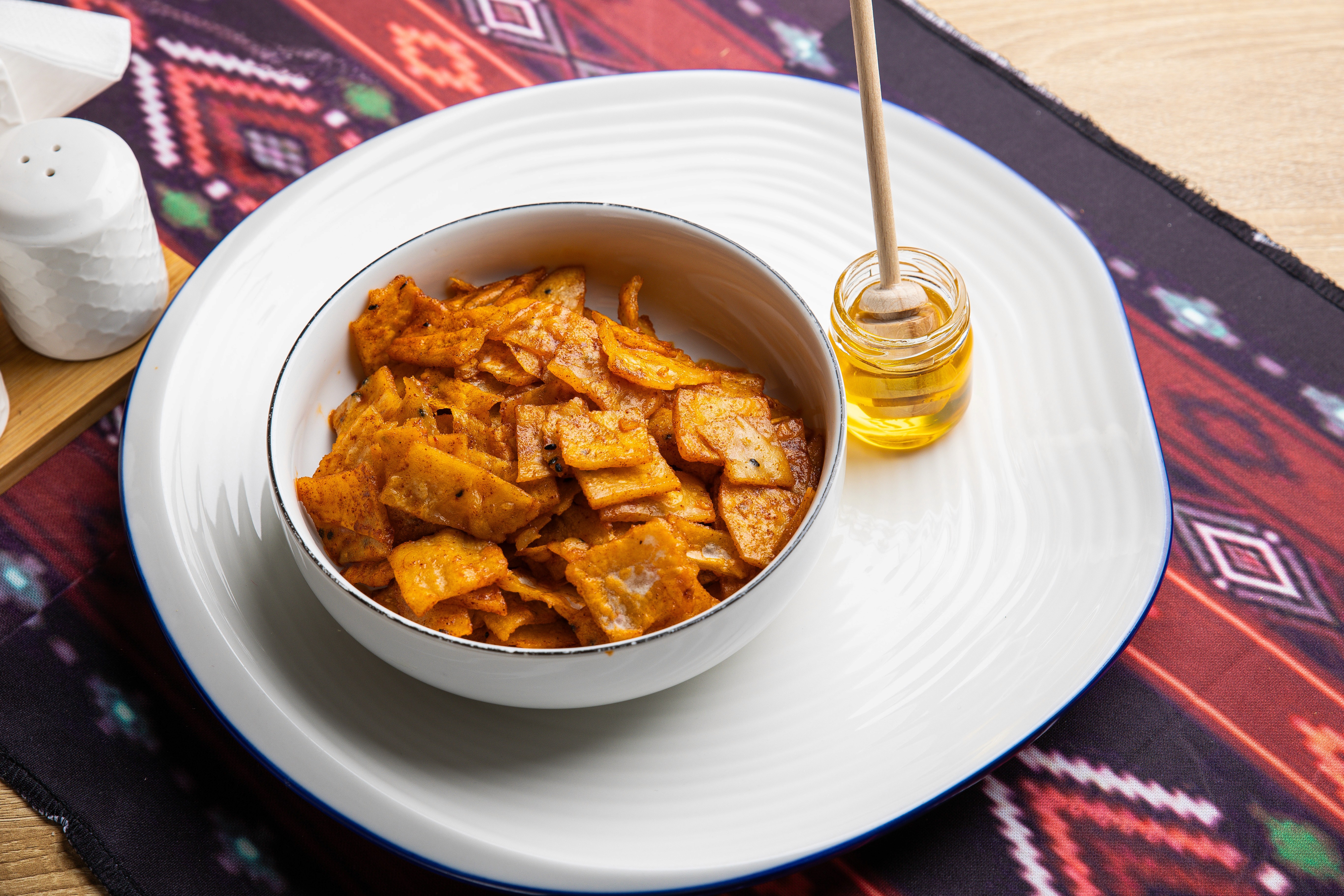 Porwana i podsmażona na patelni flatbread (chleb) z masłem przyprawionym i odrobiną berbere. Delikatnie doprawiony smak. Opcja: możliwość posłodzenia miodem.