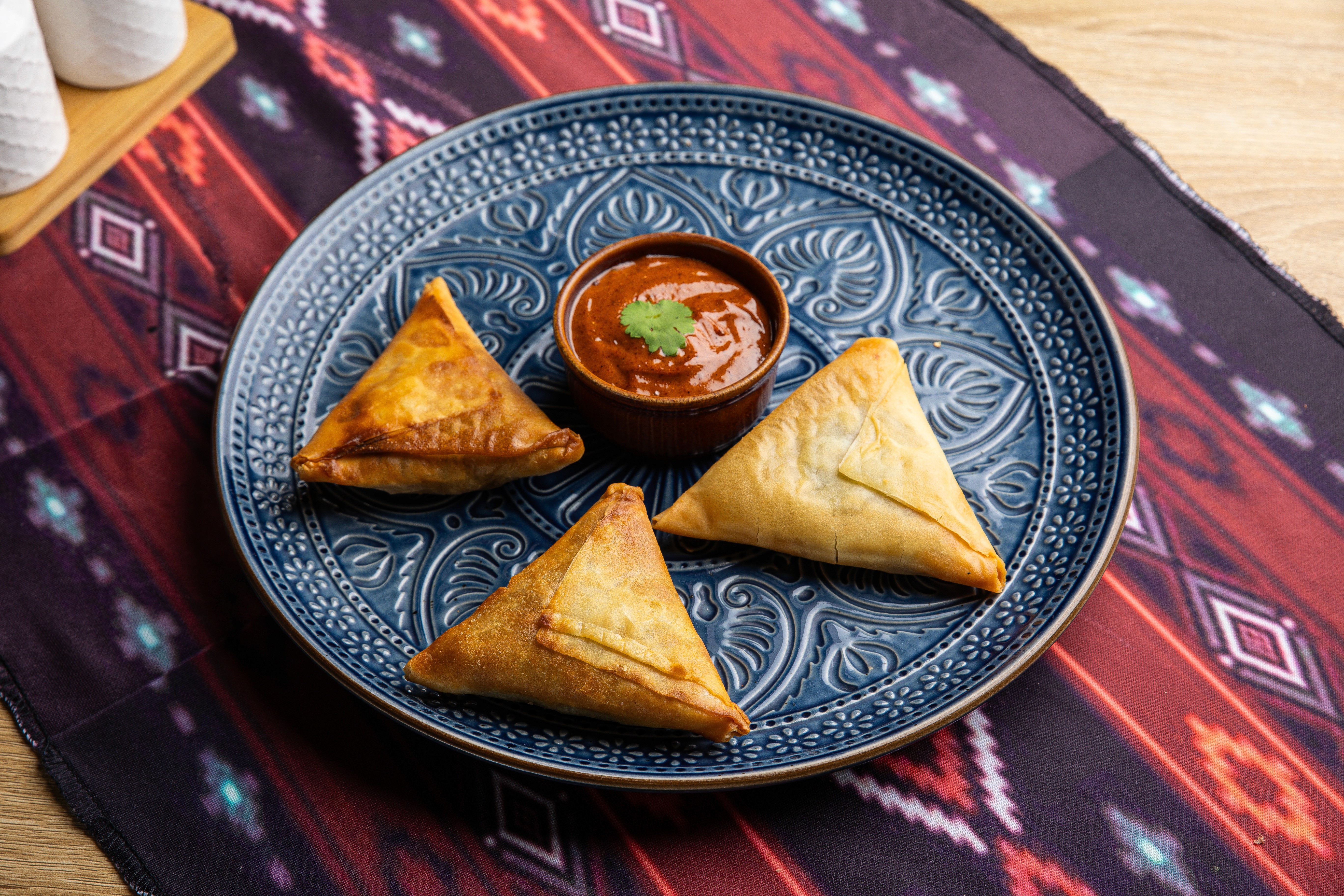 Chrupiące pierożki nadziewane przyprawioną soczewicą lub mięsem mielonym, z cebulą i papryką. Smak wytrawny.
